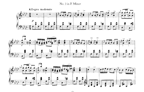 Впрочем, у Шуберта не только танцевальные пьесы признаны маленькими жемчужинами музыкального искусства. Особое место в многочисленных рядах его фортепианных миниатюр занимают шесть «Музыкальных моментов», среди которых наибольшую популярность заслужила композиция № 3 в тональности фа-минор.