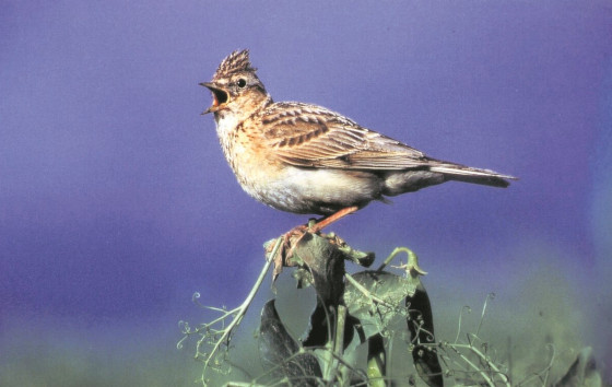 - Жаворонок – эта звонкоголосая небольшая птичка по размеру немногим больше воробья. Она не обладает яркой внешностью, но имеет такой чудесный голос, что её и мелодическим пением, сообщающем о приходе весны люди наслаждаются на разных континентах. При средней длине тела, составляющей четырнадцать сантиметров, и весе всего сорок пять грамм, жаворонок имеет довольно большие крылья, позволяющие ему быстро и ловко летать. В данном птичьем семействе поют только самцы, при этом каждый индивидуум имеет свой неповторимый тембр голоса, которым выводит свойственные только ему пассажи. Песня жаворонка обычно длиться чуть более десяти минут, затем птичка немного отдыхает и вновь, чтобы завлечь самку, заводит свою чарующую песню.