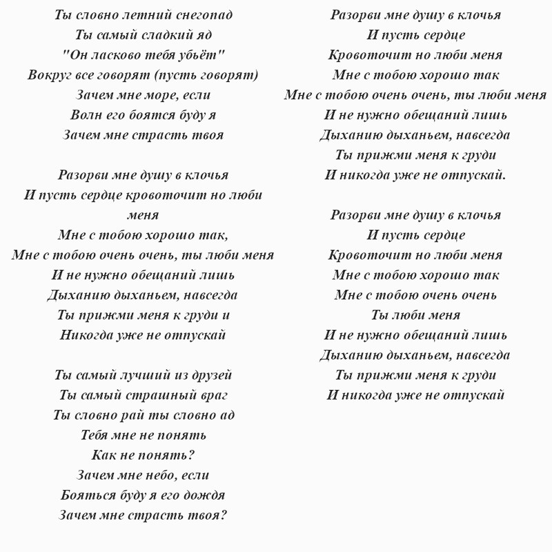 Из второго куплета становится понятно, что возлюбленный главной героини так же сильно пленён любовью, как и она сама. Бахтияр поёт о том, что не может полностью понять свою загадочную пассию, сравнивая её то с лучшим другом, то с самым злейшим врагом. Простые, но красивые метафоры гармонично дополняют звучание композиции.