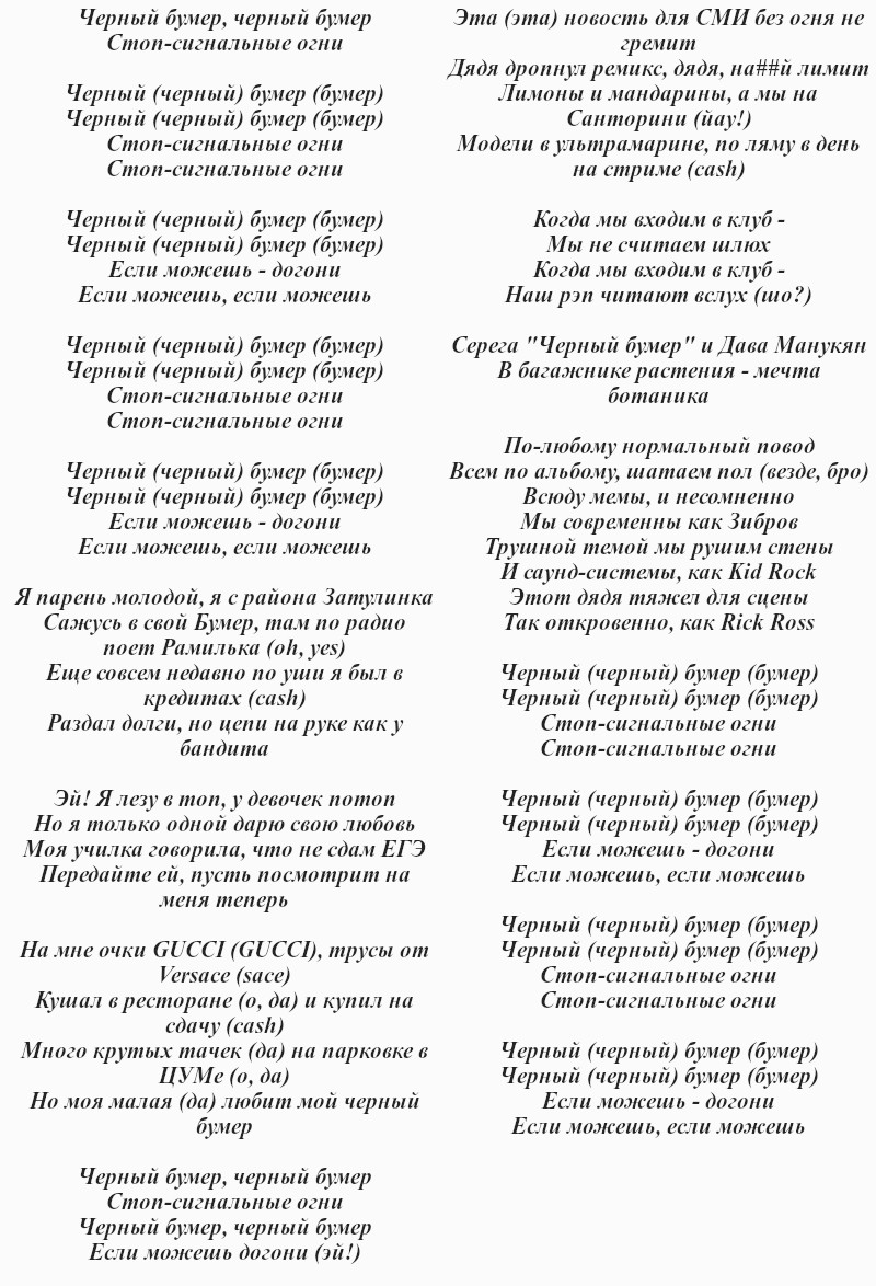Содержание и текст песни DAVA, SERYOGA «Чёрный бумер»