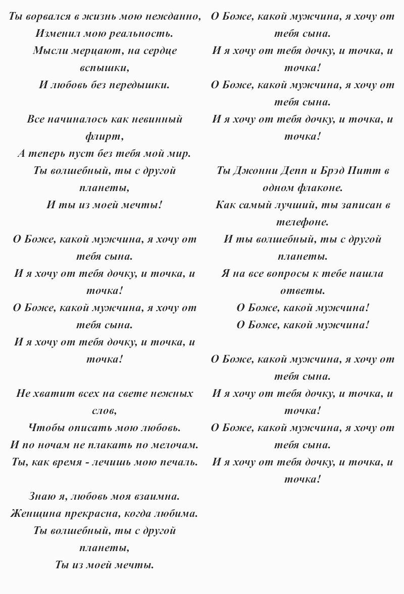 Содержание и текст песни Натали «О Боже, какой мужчина!»