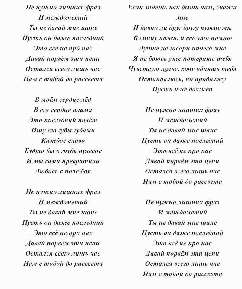 Содержание и текст песни Зомб, Ханна «Шанс»