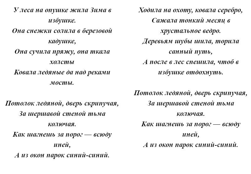 Содержание и текст песни «Зима»
