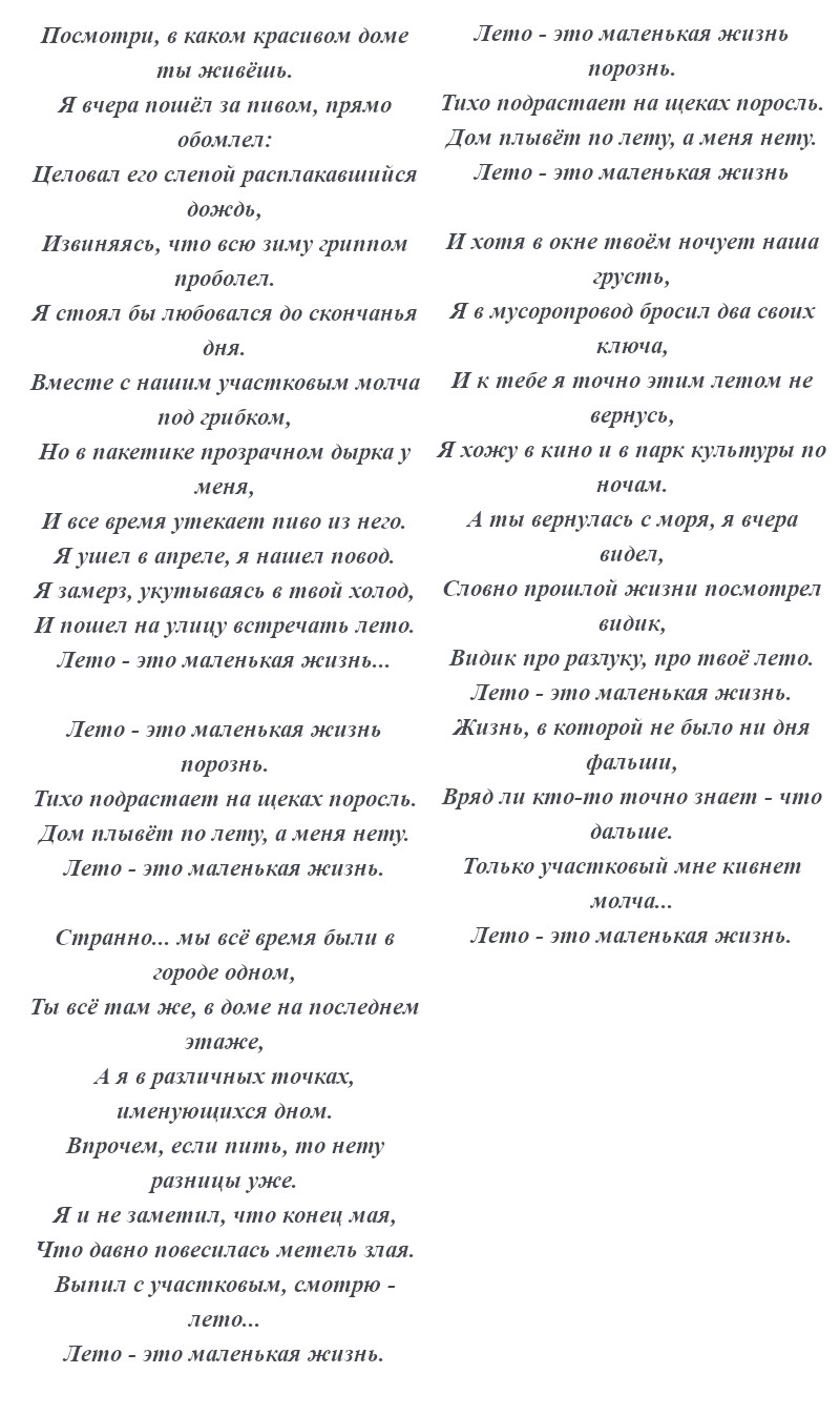 Содержание и текст песни «Лето – это маленькая жизнь»