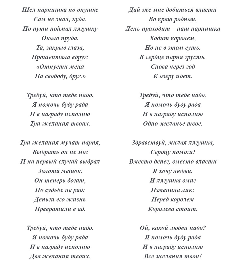 Содержание и текст песни «Три желания»